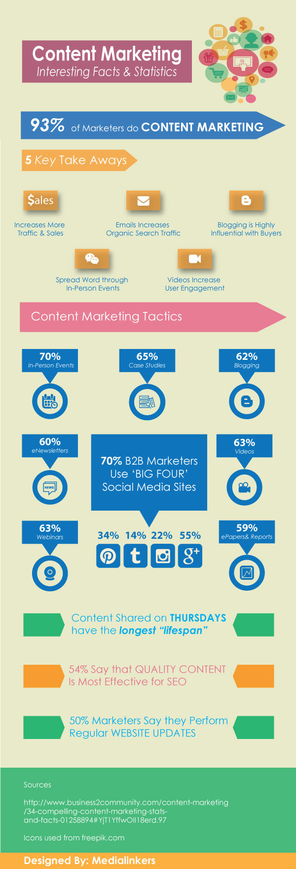 Check the infographic below for finding interesting and useful statistics and facts regarding content marketing, presented by the team of Medialinkers.